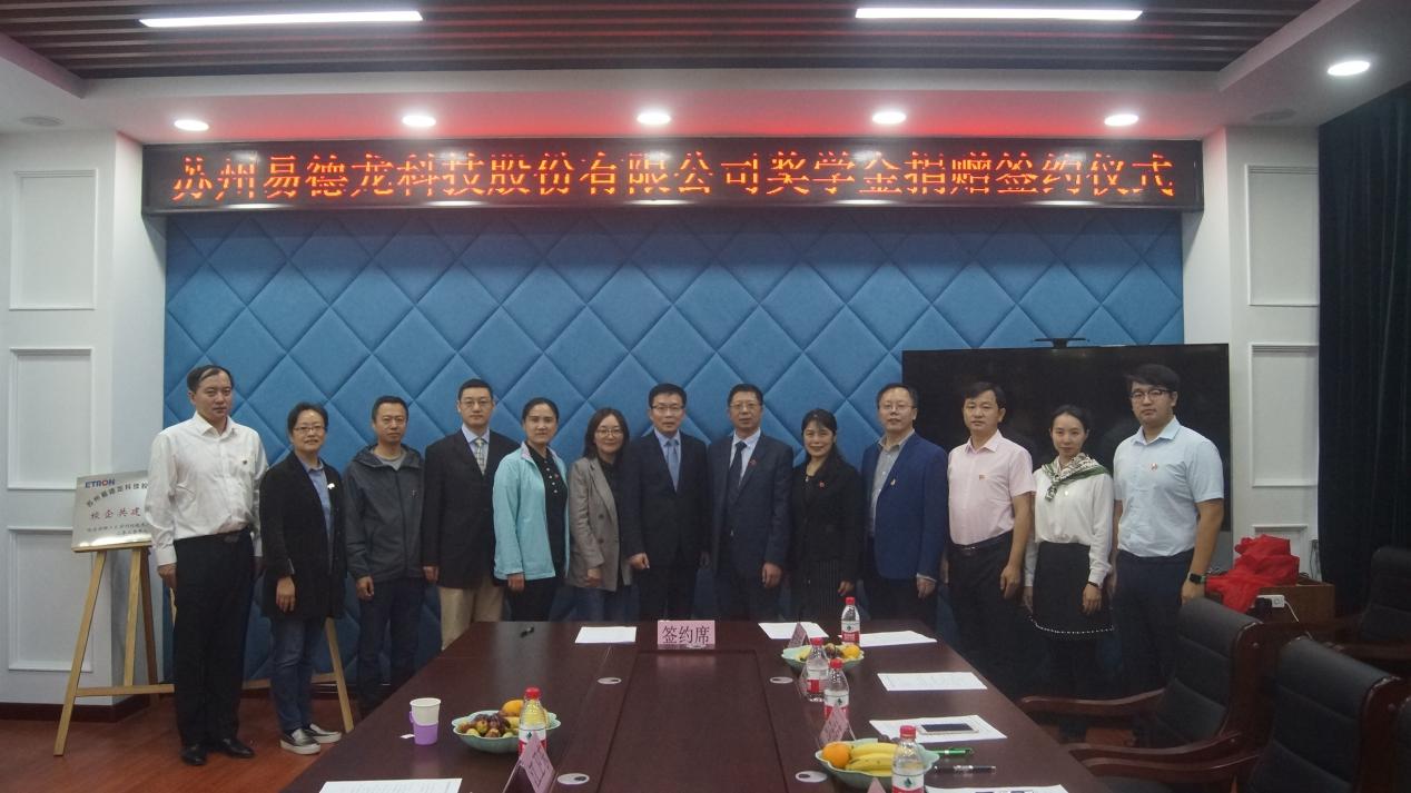 本次捐赠项目包括易德龙综合发展奖学金、易德龙育苗奖教金、实验器材捐赠、大学生就业实习基地、共建实验室等几项内容,惠及学院三个专业,签约三年,捐赠累计价值15万。这次签约仪式,标志着我院与贵企业在学生奖学金、生产实习、就业实习、校企共建实验室等方面迈出了新的一步,揭开了院企合作的新篇章。