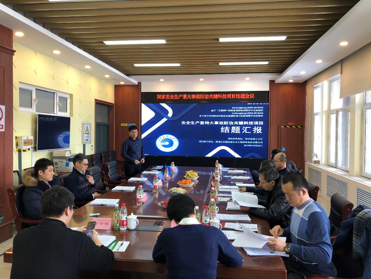为做好国家安全生产重特大事故防治关键技术科技项目结题验收工作,按照《安全生产科技项目管理规定》要求,2019年12月30日,受中华人民共和国应急管理部委托,由黑龙江省应急管理厅科技与信息化处组织相关领域7位知名专家,在哈尔滨理工大学新主楼D209会议室召开了本次结题验收会,对我学院承担的《基于“互联网+”的双重预防机制管控平台的研究》及《基于地下空间复杂环境安全监测终端与远程预警平台的研究》两个项目进行结题验收。本次会议专家组由黑龙江科技大学安全工程学院院长张保勇(验收委员会主任)、东北林业大学建筑工程学院副院长程东辉(验收委员会副主任)、哈尔滨工业大学东亚电子仪器开发有限责任公司副总经理田智伟(验收委员会副主任)、黑龙江科技大学安全工程学院副院长张迎新、黑龙江科技大学安全工程学院副院长徐锋、哈尔滨第一机械集团有限公司副总经理梁伟、国家林业和草原局哈尔滨林业机械研究所副所长徐克生等7位专家组成。会议由黑龙江省应急管理厅科技与信息化处刘宋依副处长主持验收工作。